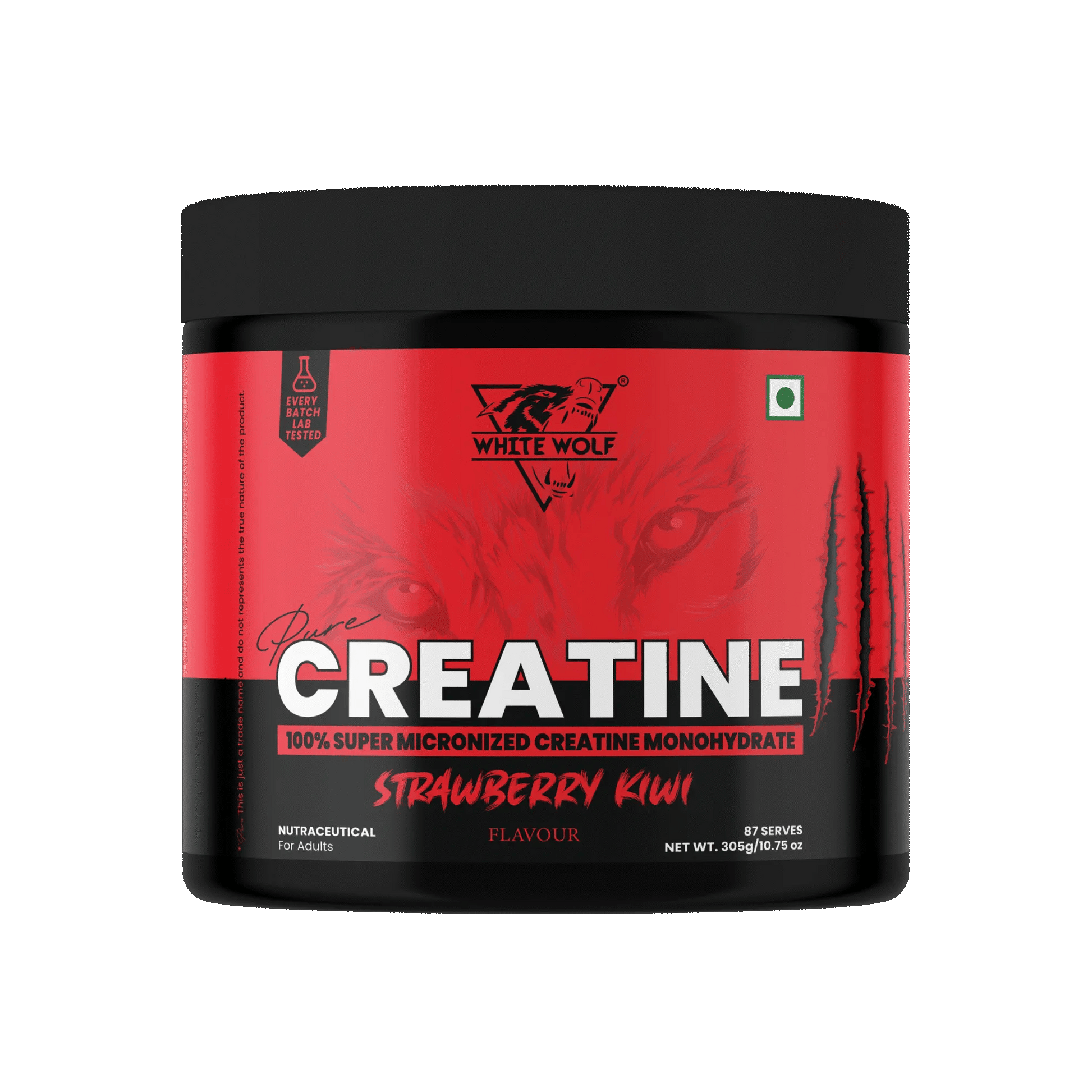 Creatine Monohydrate , Maltodextrin, Acidity Regulator (INS 330), Artificial Sweetener (INS 955), Preservative ( Ins 202 ), Antioxidant ( INS 320 ) Contains Permitted synthetic Food Color (INS 124) and added Flavor nature identically flavoring substance -Strawberry Kiwi