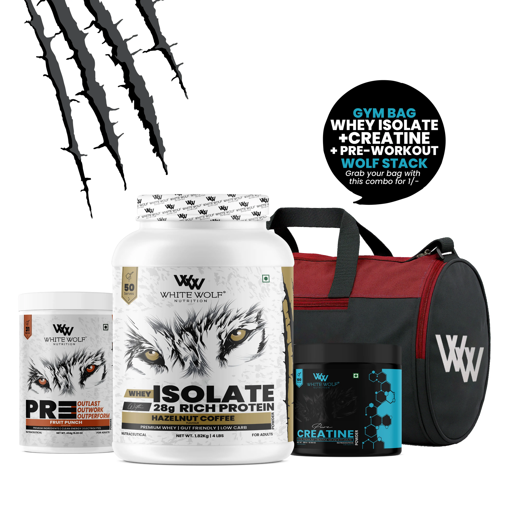 Whey Isolate 1.82kg + Pre-Workout + Unflavoured Creatine 300g With Gym Bag